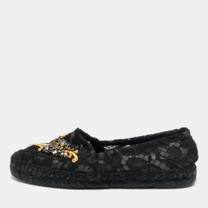 حذاء إسبادريل فلات دولتشي أند غابانا دانتيل ومشبك أسود مزين بالكريستال مقاس 36