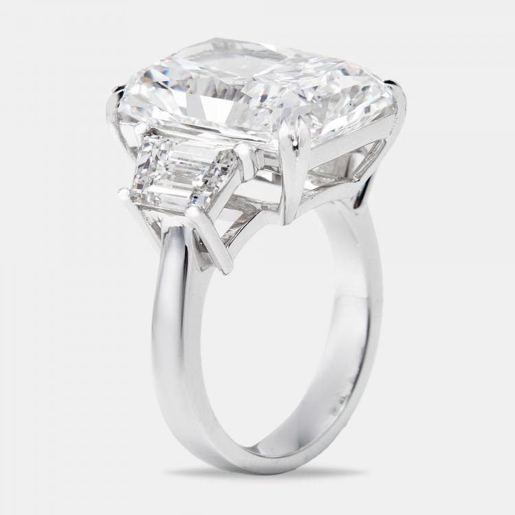 Pre Owned خاتم ماس مصنع في المختبر بقصة مشعة ومع حجارة ترايبيز بشكل وزن 14.00 قيراط من الذهب الأبيض عيار 18 بحجم 52.