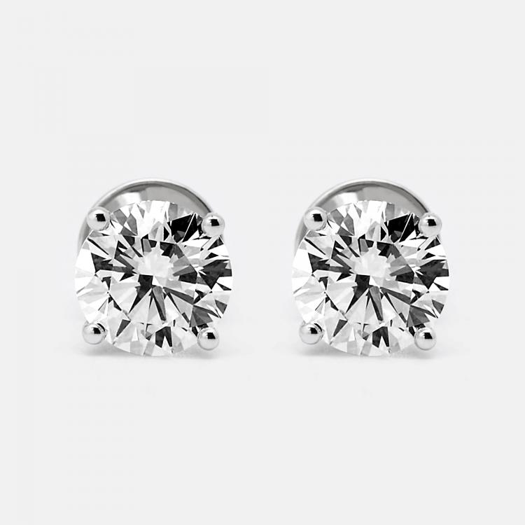 مملوكة مسبقًا أقراط ألماس مزروعة مختبرياً بوزن 2 قيراط مستديرة ذهب أبيض عيار 18