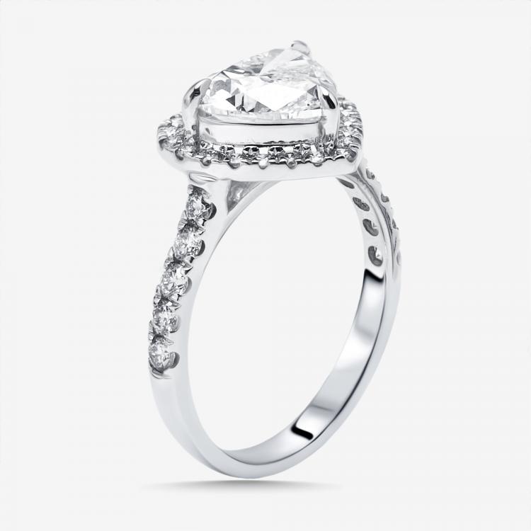 خاتم ألماس بوزن 2.5 قيراط بقطع قلب ودائري مُصنَّع في المختبر من الذهب الأبيض عيار 14 بحجم 52.