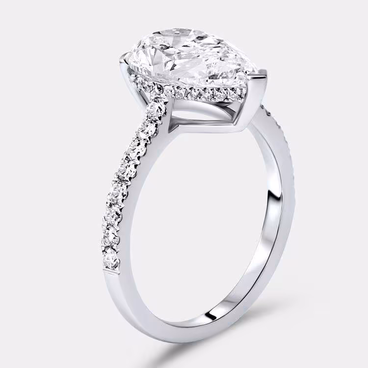 خاتم ألماس مصنع في المختبر بوزن 3.25 قيراط بقطع كمثرى وبرلنت دائري من الذهب الأبيض عيار 18 بمقاس 52.