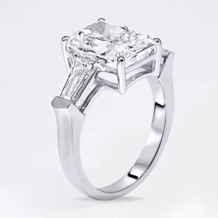خاتم ألماس مصنع في المختبر بوزن 4.8 قيراط بقطع مشعٍ شبه منحرف من الذهب الأبيض عيار 18 مقاس 53.