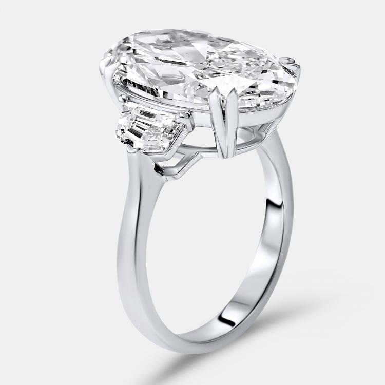 خاتم ألماس مصنوع في المختبر بقطع بيضاوي لامع ومتوازي الأضلاع بوزن 8.99 قيراط من الذهب الأبيض عيار 18 بمقاس 54.