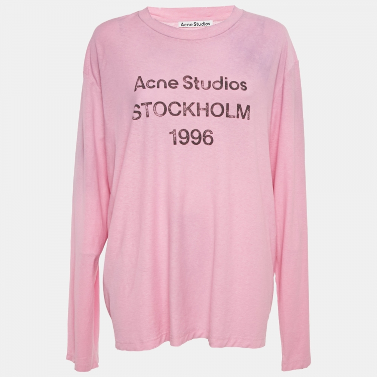 مملوكة مسبقًا تي شيرت طويل الأكمام أكني ستوديوز قطن وقنب وردي كبير
