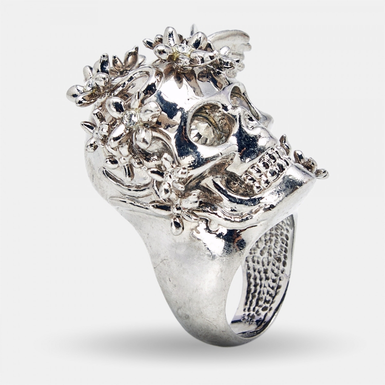 مملوكة مسبقًا خاتم ألكسندر ماكوين جمجمة كريستال فضي اللون مقاس 53