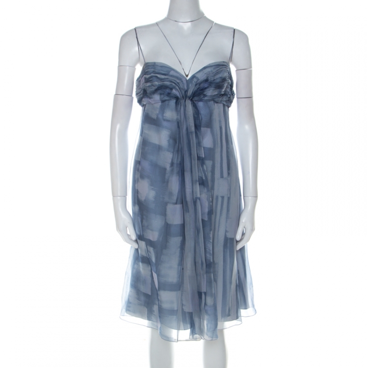 Pre Owned فستان أرماني بيبيدول بوست مكشكش أورجانزا حرير مطبوع أزرق M