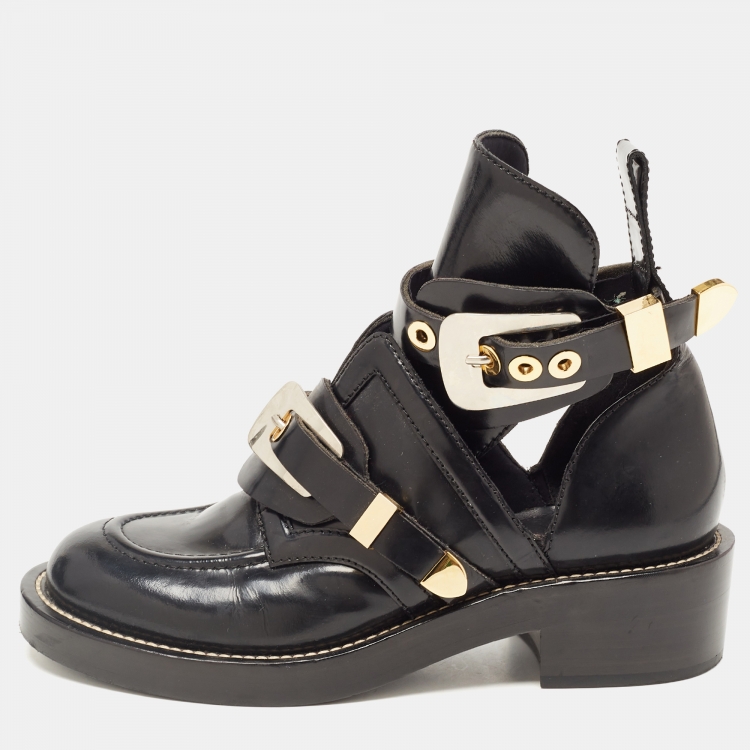 Balenciaga Black Leather Ceinture Buckle Detail Ankle Boots Size 38.5