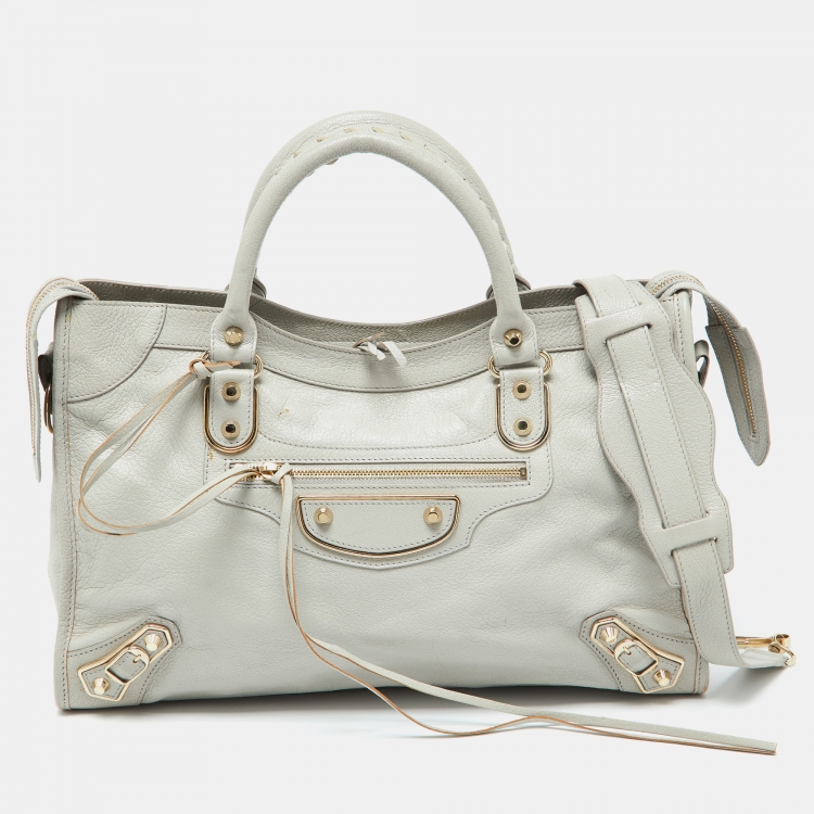 Pre Owned حقيبة يد توتس بالنسياغا ميتاليك إيدج سيتي جلد غريس غليس ميتاليك