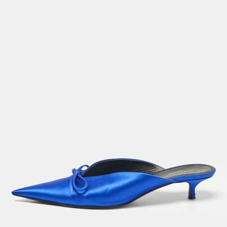Balenciaga Royal Blue Satin Bow Knife Heel Mules Size 38