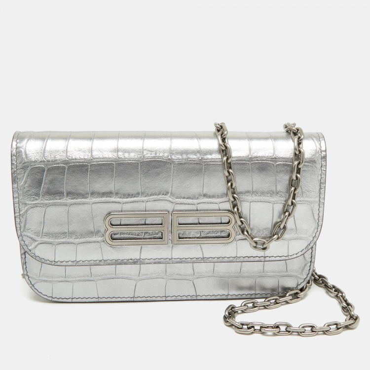 محفظة بالنسياجا غوسيب جلد منقوش كروك فضي بسلسلة