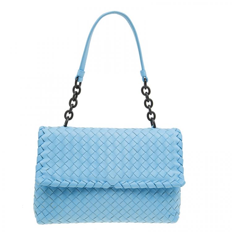 حقيبة يد بوتيغا فينتيا أوليمبيا إنترشياتو يد علوية جلد أزرق فاتح صغيرة