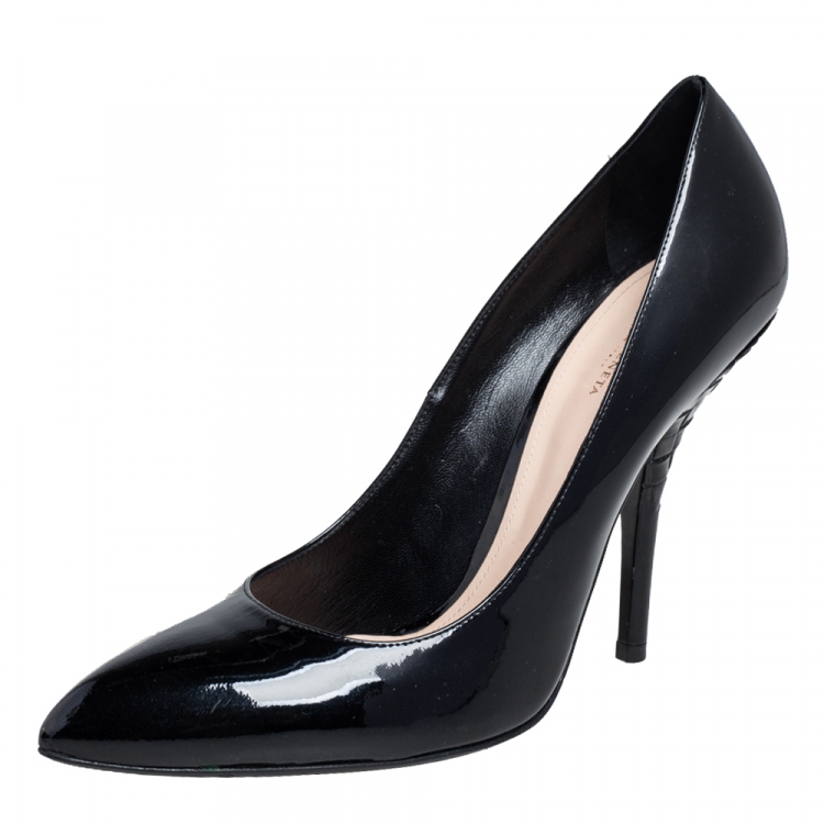 مملوكة مسبقًا حذاء كعب عالي بوتيغا فينيتا جلد أنترشياتو أسود لامع مقدمة مدببة مقاس 40