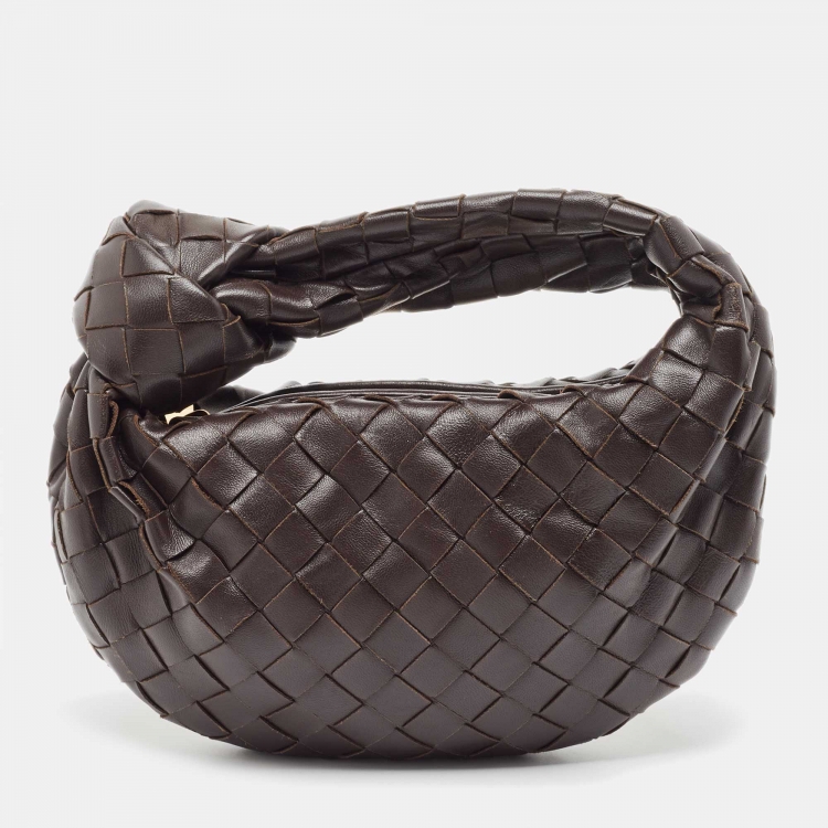 Bottega Veneta Dark Brown Leather Intrecciato Mini Jodie Top Handle Bag