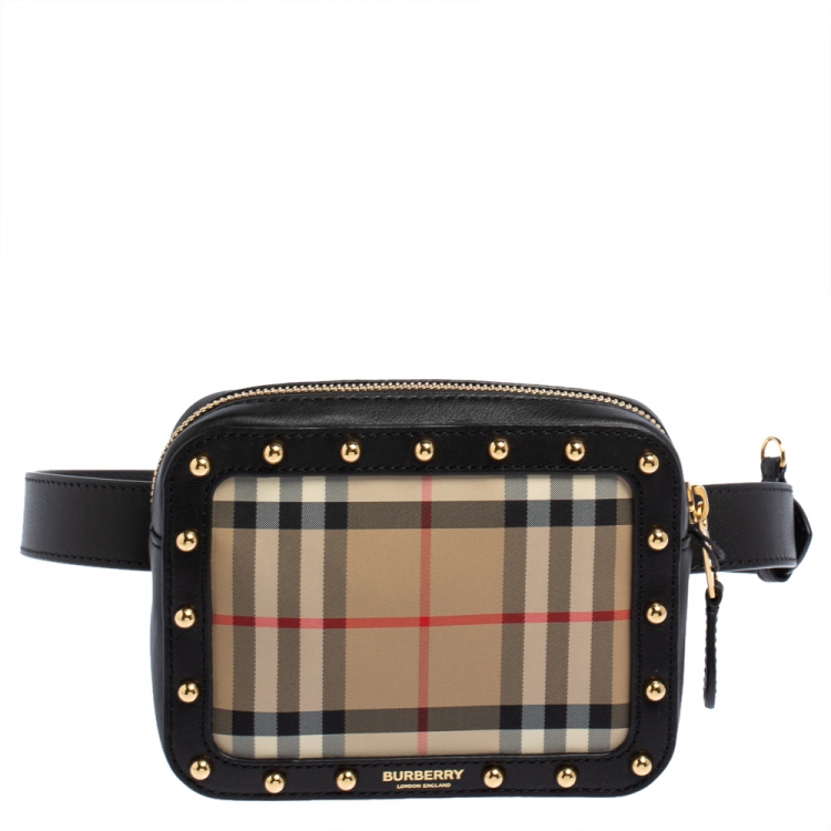 Burberry Beige/Black Nova Check Canvas and Leather Studded Elise Belt Bag