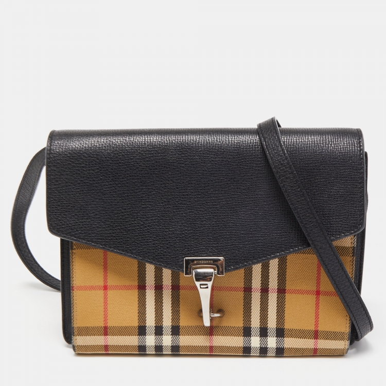 مملوكة مسبقًا حقيبة كروس بربري ماكين جلد وكانفاس كاروهات هاوس