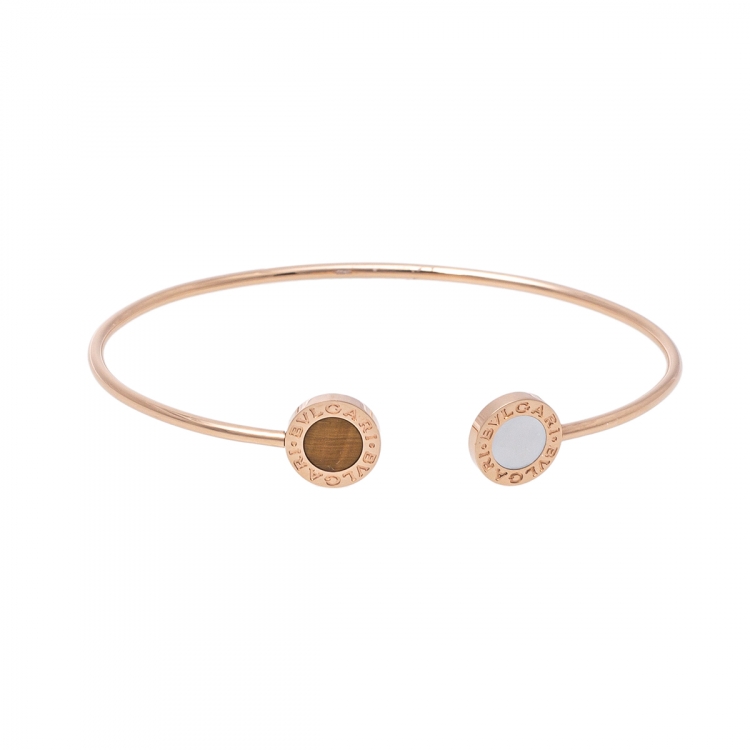 مملوكة مسبقًا سوار مفتوح بلغاري بلغاري ذهب وردي عيار 18 و عين النمر و صدف مقاس متوسط (ميديوم)
