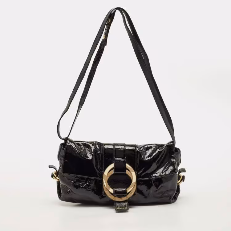 Pre Owned حقيبة كتف بلغاري شيندرا جلد أسود لامع