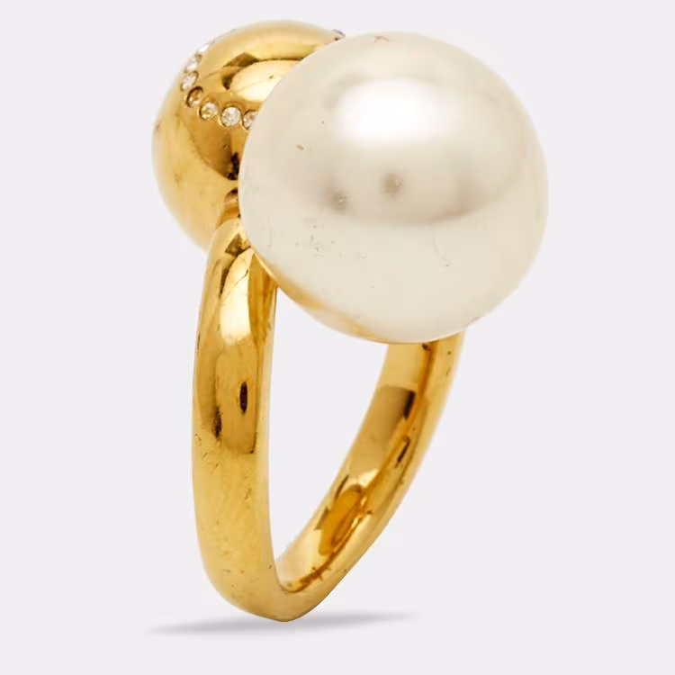 مملوكة مسبقًا خاتم كارولينا هيريرا سي إتش حبة لؤلؤ صناعية كريستال لون ذهبي حجم 49