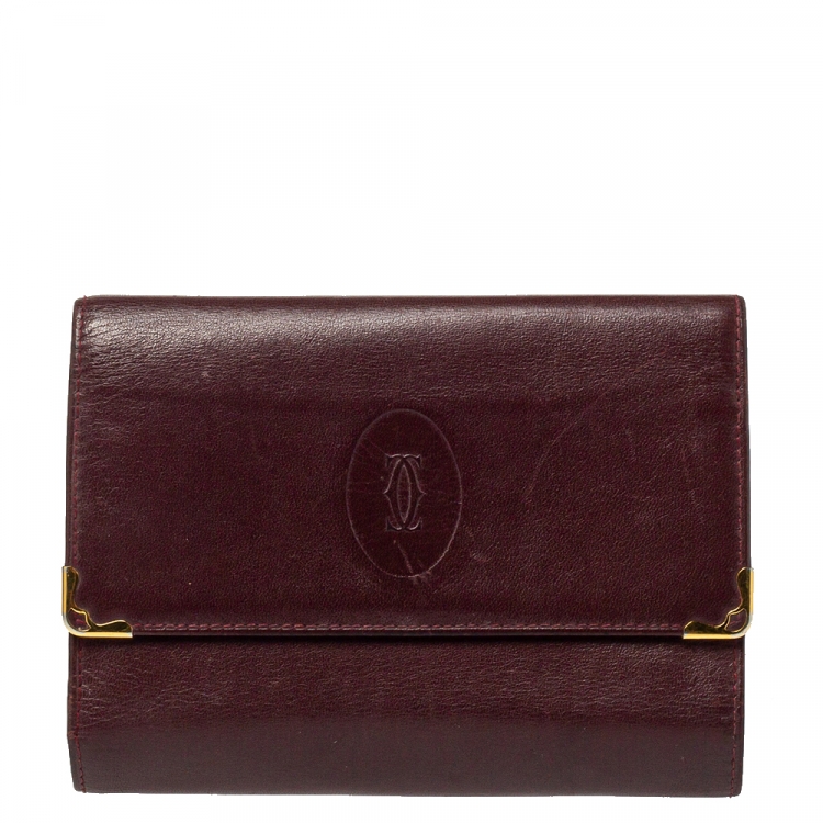 مملوكة مسبقًا محفظة كارتييه طية ثلاثية جلد عنابي