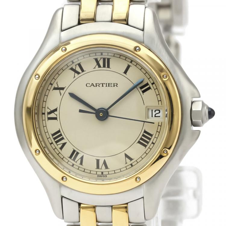 Cartier Silver 18K Yellow Gold And Stainless Steel Panthere Cougar 187906 Women's Wristwatch 26 MM