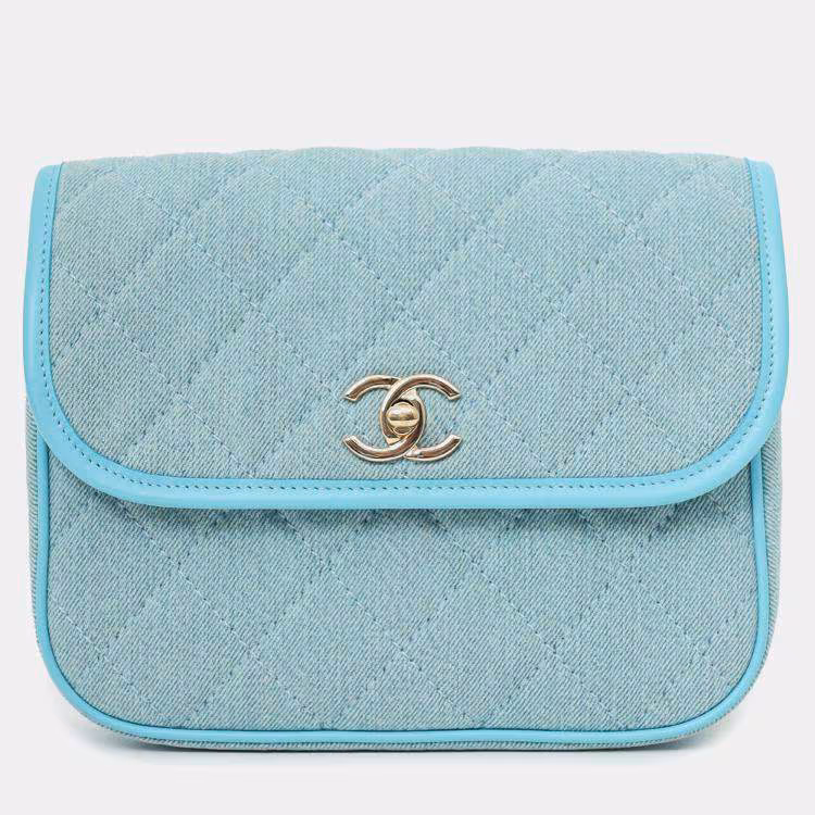 حقيبة شانيل بلو دينيم مبطن CC صغيرة للرسائل مع غطاء رفرف 2021