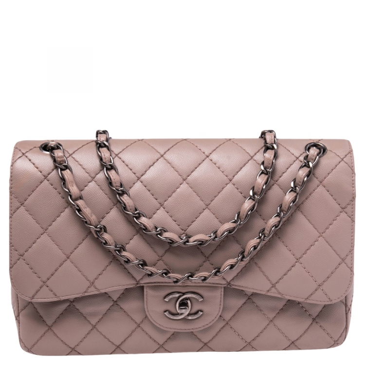 حقيبة شانيل كلاسيك جامبو جلد كافيار مبطن أسود بقلاب مزدوج