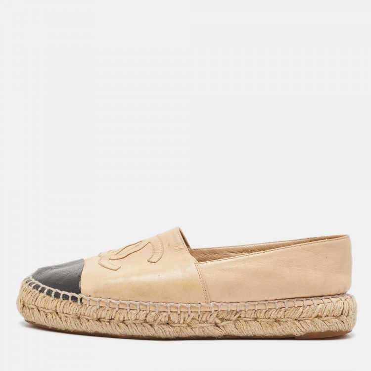 Chanel Beige/Black Leather CC Espadrille Flats Size 38