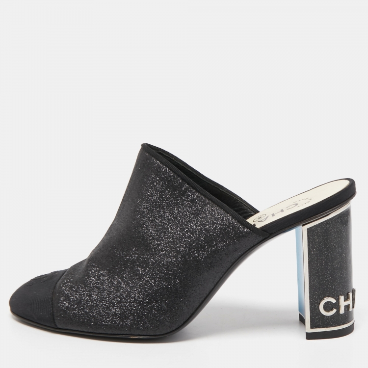 Chanel Black Glitter and CC Fabric Cap Toe Mules Size 39.5