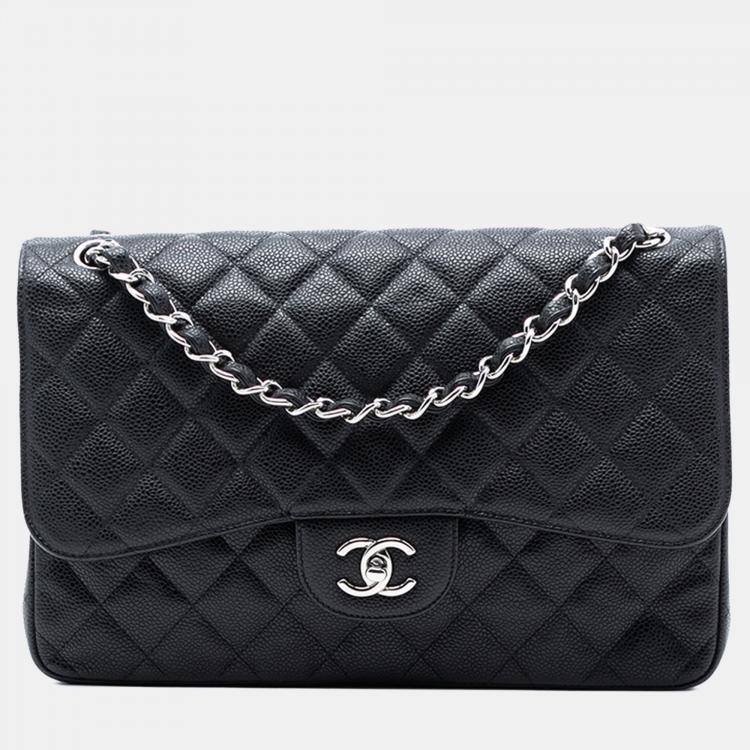 مملوكة مسبقًا حقيبة شانيل جامبو كلاسيك كافيار سوداء بفلايت مزدوجة