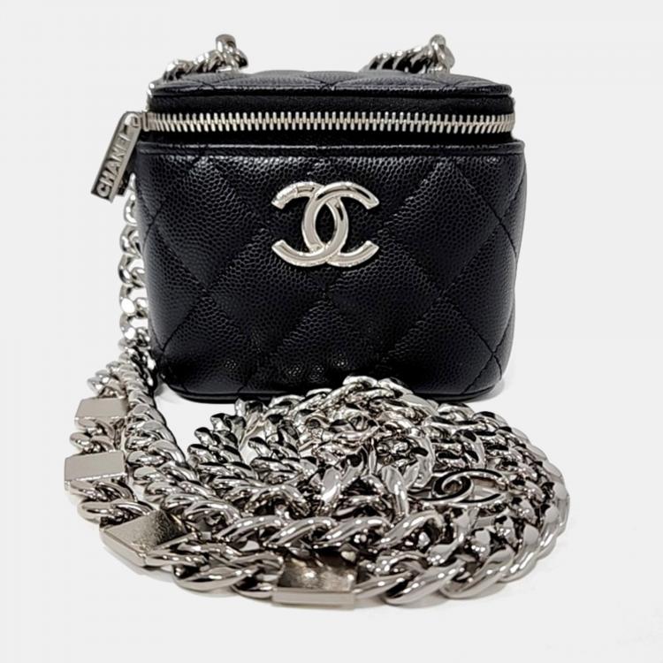 Pre Owned حقيبة شانيل فانيتي كو كو سلسلة جلد كافيار سوداء