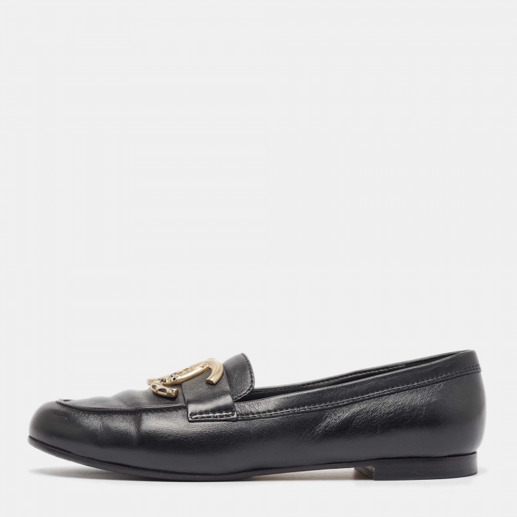 مملوكة مسبقًا Chanel Black Leather CC Loafers Size 38.5