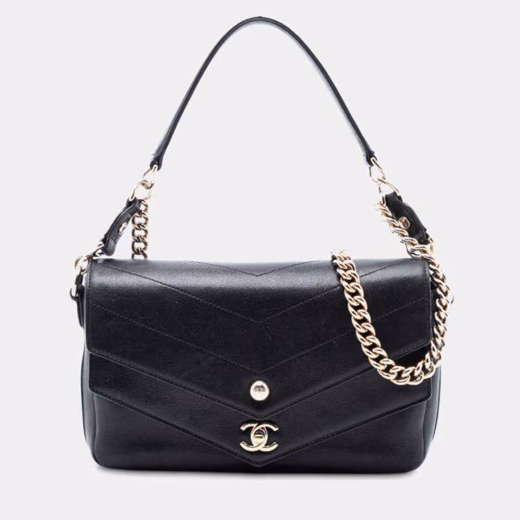 Pre Owned حقيبة شانيل مبطنة صغير جلد شيفرون مزدوج أسود