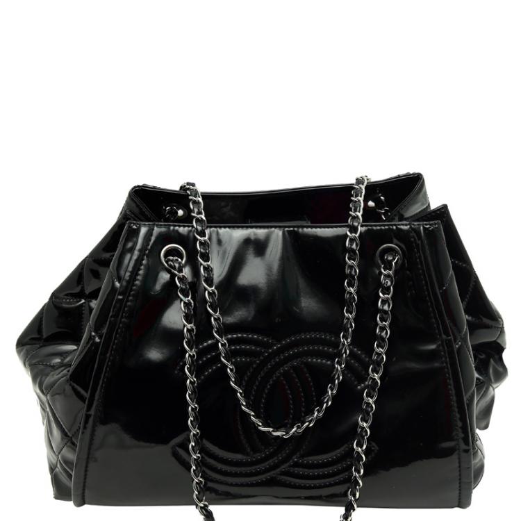 حقيبة يد شانيل CC جلد لامعة سوداء