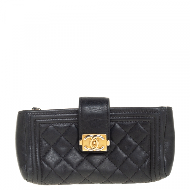 مملوكة مسبقًا حقيبة كلتش شانيل حافظة جوال بوي جلد مبطنة أسود