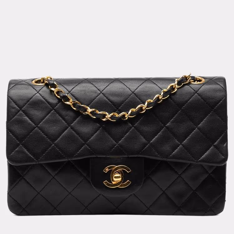 حقيبة شانيل فلاب مزدوجة جلد الخراف الكلاسيكي الأسود صغير