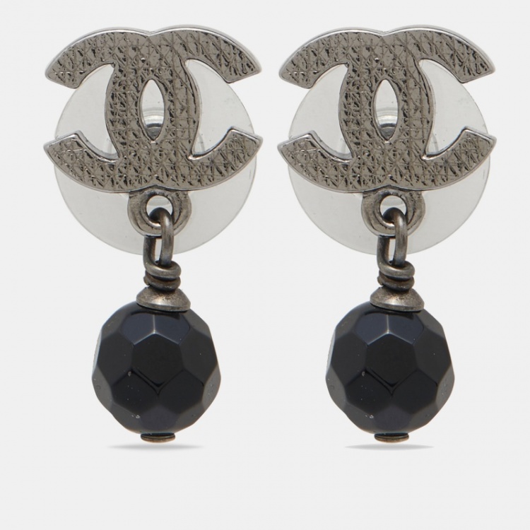 أقراط متدلية شانيل كريستال أسود CC رصاصي اللون