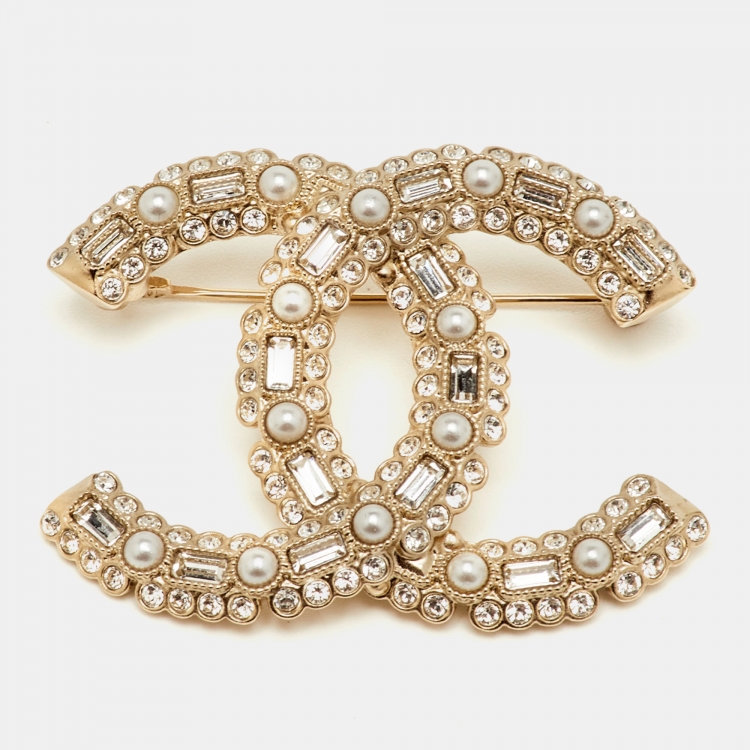 بروش شانيل CC كريستال لؤلؤي زائف ذهبي اللون