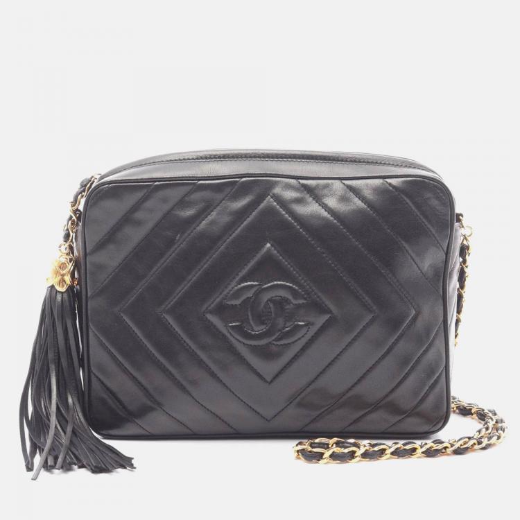 مملوكة مسبقًا حقيبة شانيل �سلسلة كتف جلد حمل أسود شعار CC بتطعيم ذهبي