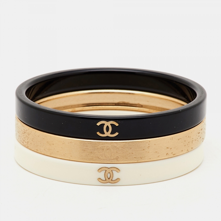 Pre Owned مجموعة أساور شانيل سي سي رزين ذهبي اللون مكدسة من ٣ قطع