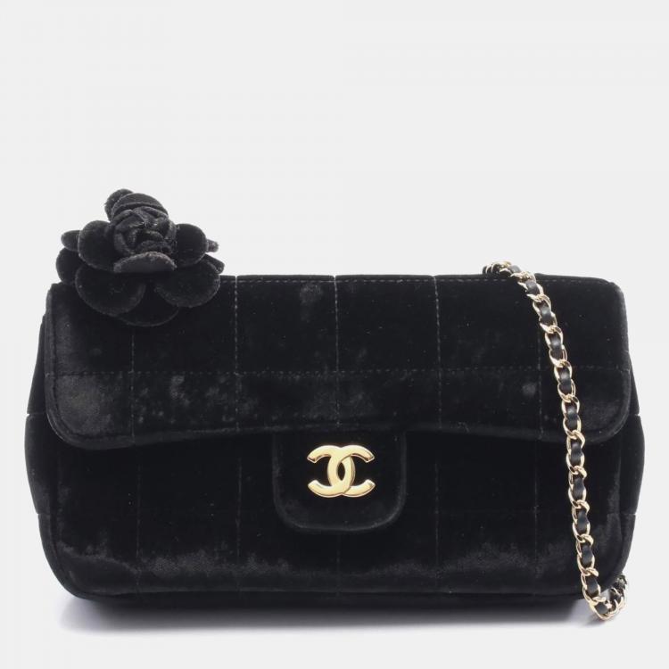 Chanel Chocolate Bar Camellia Shoulder Bag Fabric Black