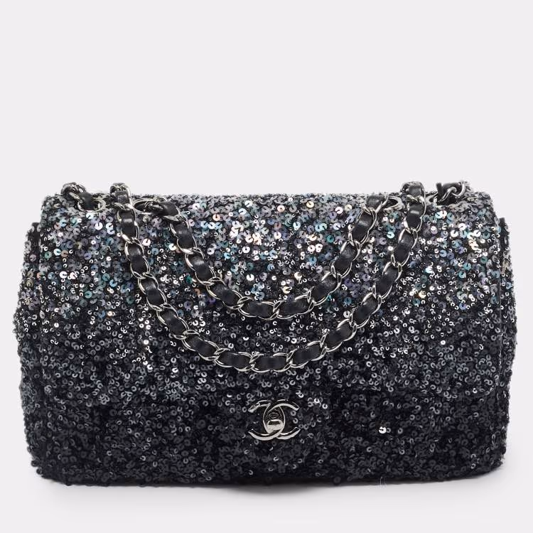 حقيبة شانيل كلاسيك جلد وسويدي بني مزخرفة كريستال بقلاب متوسطة