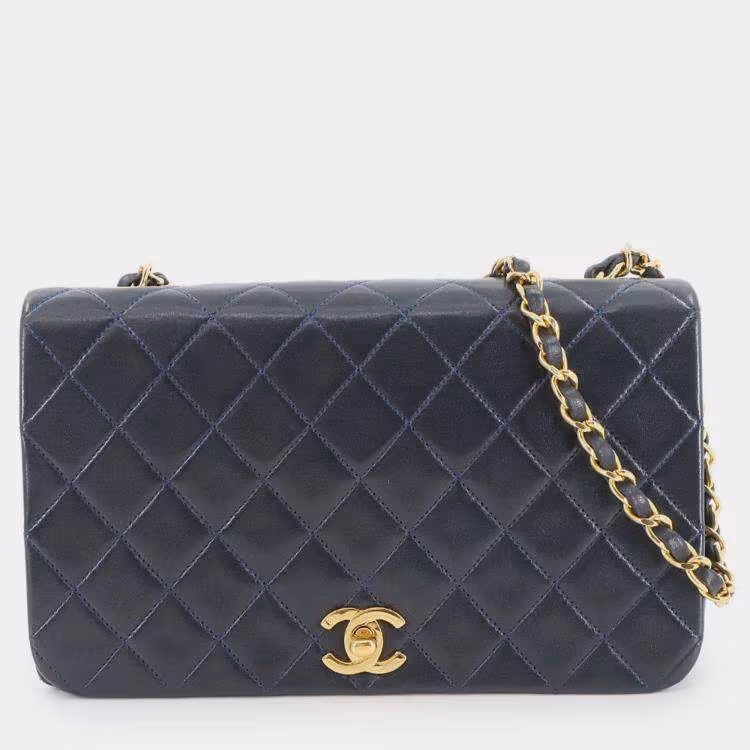 حقيبة كتف شانيل جلد أزرق قفل كامل رفرف