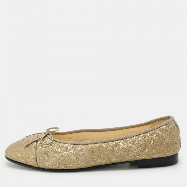 Chanel Gold Quilted Caviar Leather CC Ballet Flats Size 40