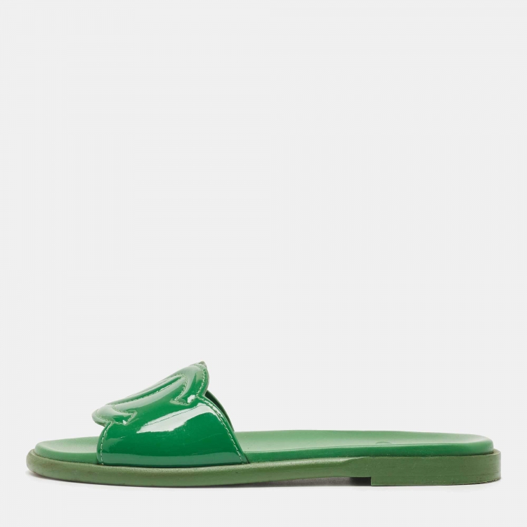 Chanel Green Patent Leather CC Flat Slides Size 40.5