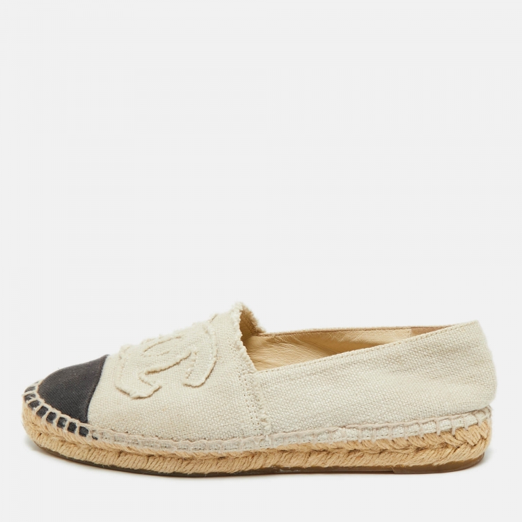 حذاء إسبادريل فلات شانيل قماش رمادي / أسود CC رأس مستدير مقاس 36