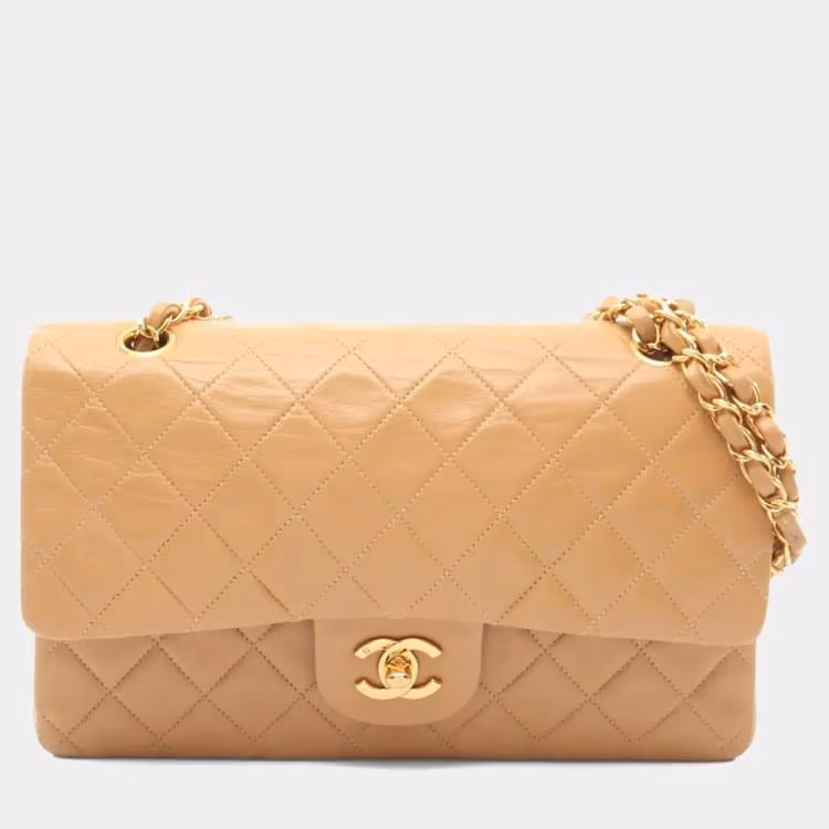Pre Owned حقيبة كتف شانيل ماتلاس مزدوجة بجليد الخروف بيج