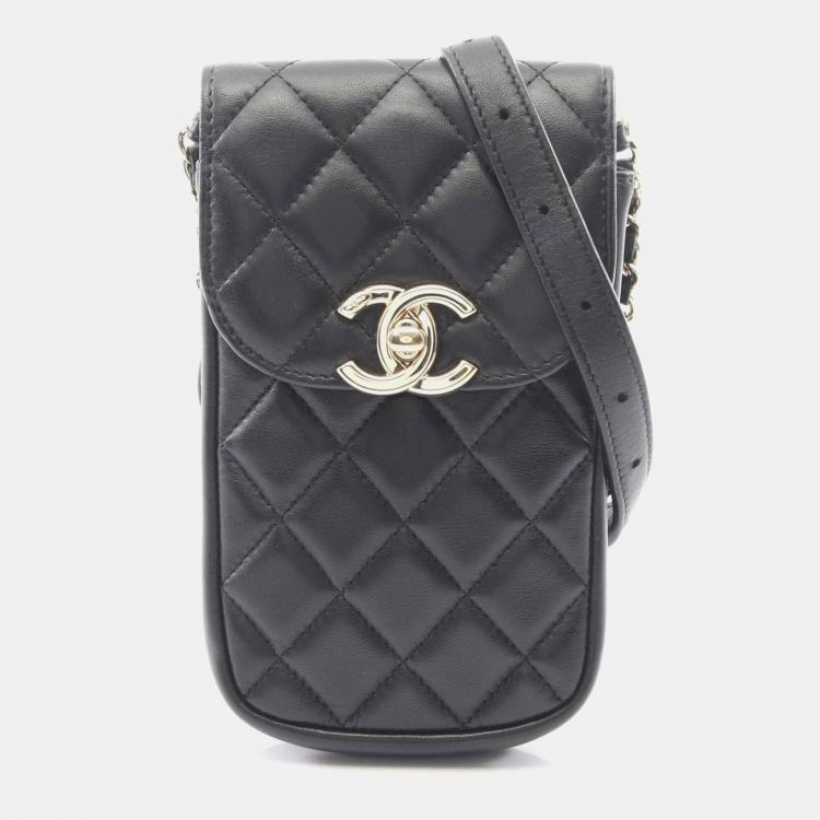 Chanel Matelasse Phone Holder Shoulder Bag Lambskin Leather Black