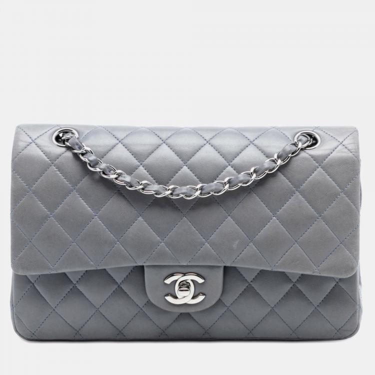 Pre Owned حقيبة شانيل كلاسيك متوسطة بلون رمادي جلد حمل مزدوجة الغطاء