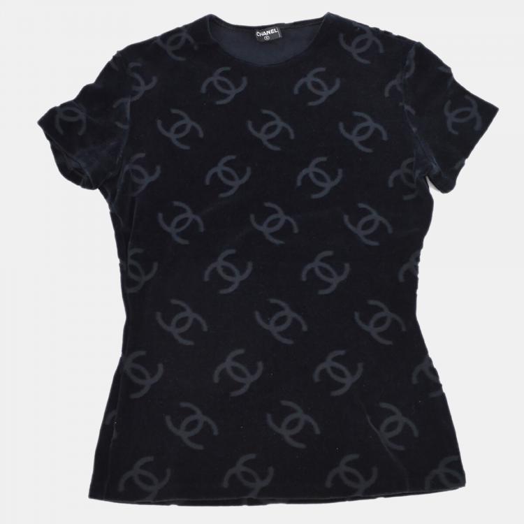 مملوكة مسبقًا قميص شانيل عنق دائري كم قصير توب أسود FR 42