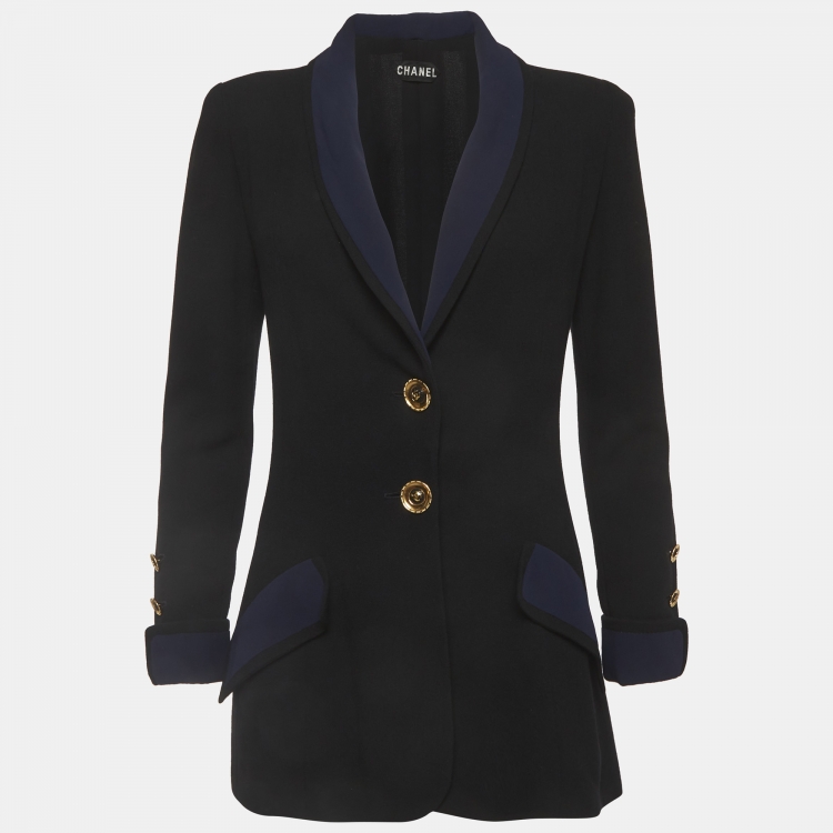 بليزر شانيل فينتاج كريب أزرار أمامية أسود مقاس وسط (ميديوم)